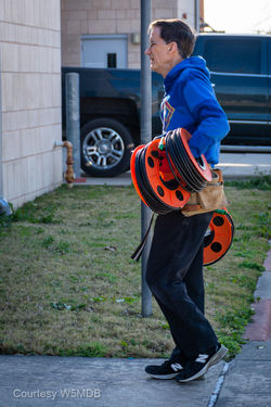 ![]() Mike Brown, W5MDB, put his camera aside long enough to pull some coax. | ![]() | ![]() Yet another antenna. |