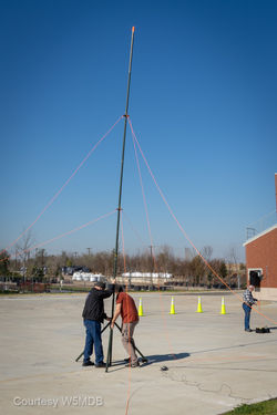 ![]() John Byrom, N5BB, ready to go. | ![]() | ![]() Venzula Mathews, KF5PJH, and Tom Schuessler, N5HYP, rig a vertical. |