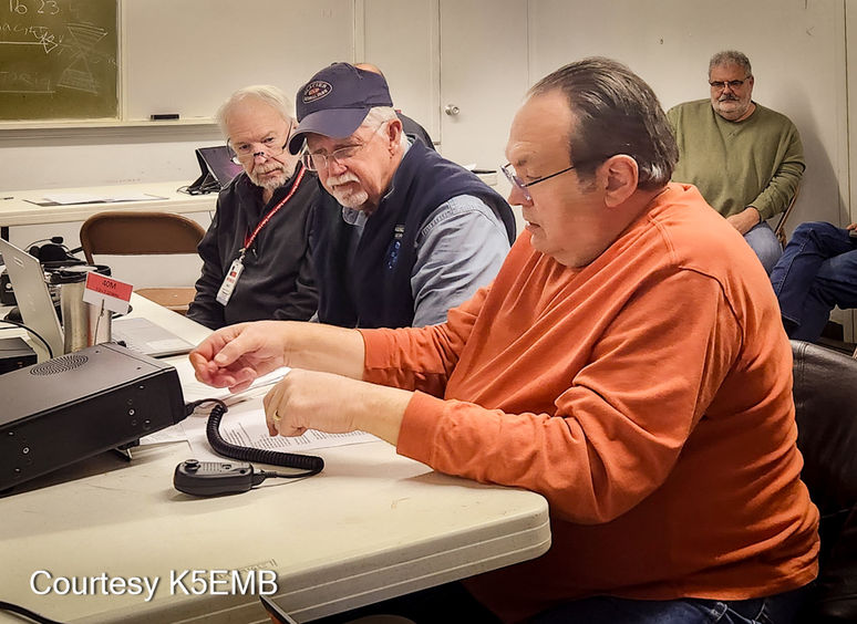 Eric Silverthorn, NM5M, was our QSO King with 208 CW contacts, followed by Ron, Andy, Kim Walter, KI5ZOT, and George Williams, KG5GXU. Kim and Ellen Markey, KG5IKG, both got some exciting on-air experience. Kevin made our solo contacts on 2 bands which helped with the multiple-bands objective. Out of the 15 participants we had 7 on-air operators.